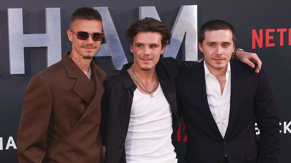 David Beckham’s sons Brooklyn, Romeo and Cruz revive three of his legendary hairstyles as they support him at the premiere of new Netflix documentary